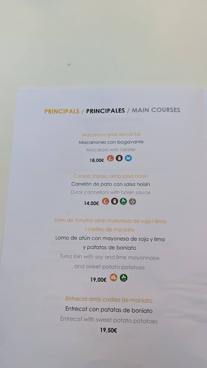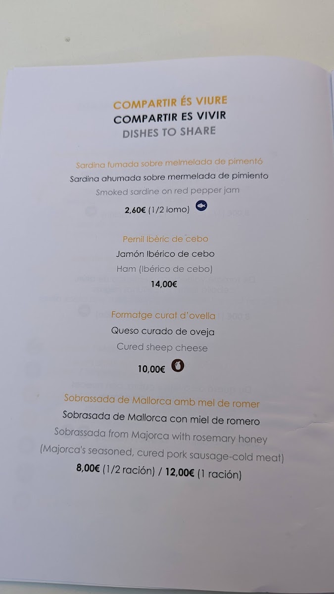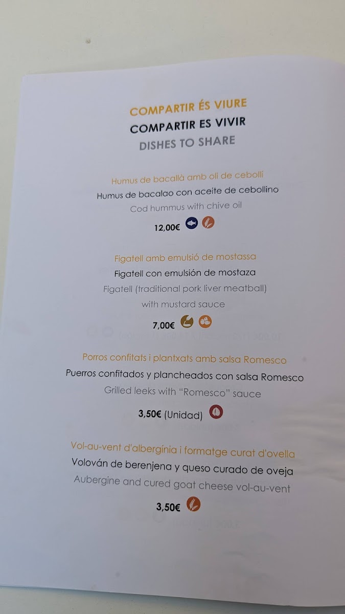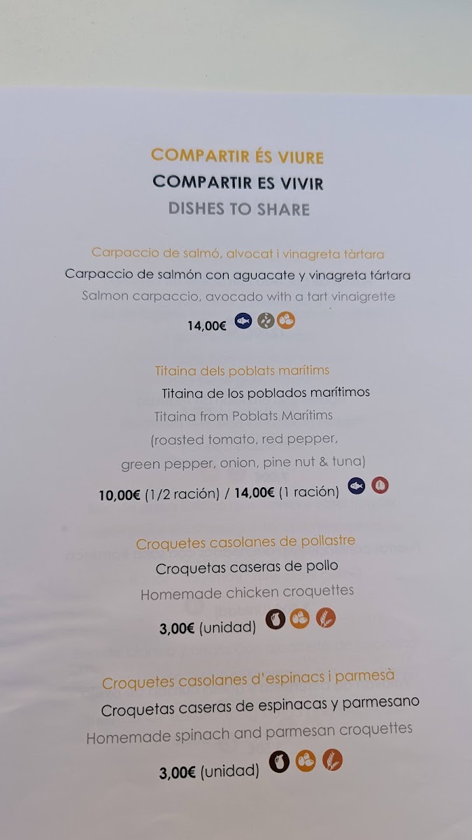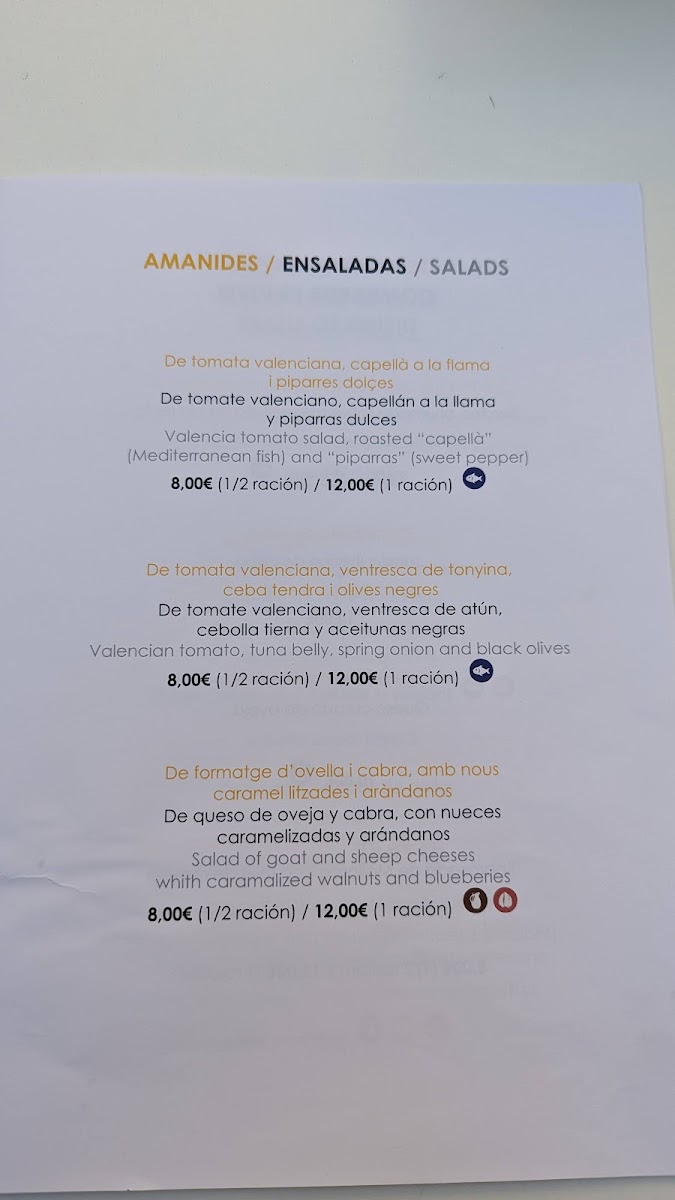 “ Excellent eatery with great service. There's barely 30 covers in the room and it seemed popular. The starters and small dishes were the best of the menu. We got to try almost everything because we had seven people and no dish was bad. The "mains" of octopus is quite small, but the lobster pasta and shrimp crepe large in comparison to the size of the small plate dishes. Favourites were the salads, the bread served with smoked sausage and sardines with red pepper jam. Desserts are vast sharer portions for the €5 price. Common to what we saw in Valencia they seem to like cakey-cake (what we'd serve as a slice for afternoon tea) as opposed to normal dessert style cake. But it was all delicious and served with smooth ice cream. If I had to choose, of the three we had, land of chocolate was the best but I'd happily chuck it in favour of more croquettes! ”